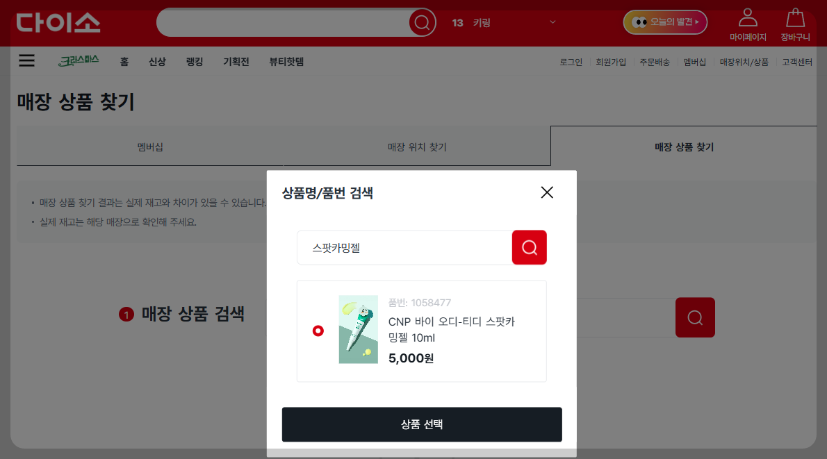 다이소 홈페이지를 통한 재고 확인 방법도 어플을 이용한 방법과 거의 유사합니다.