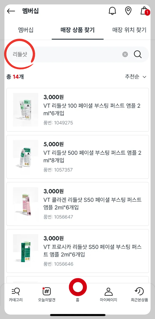저는 예시로 리들샷을 검색했더니, 용량과 개수가 각기 다른 리들샷들이 나오네요.