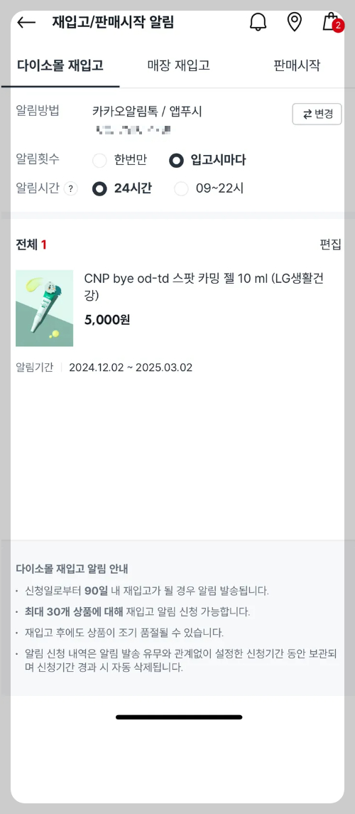(1) 다이소 앱에서 재입고 알림 신청하기