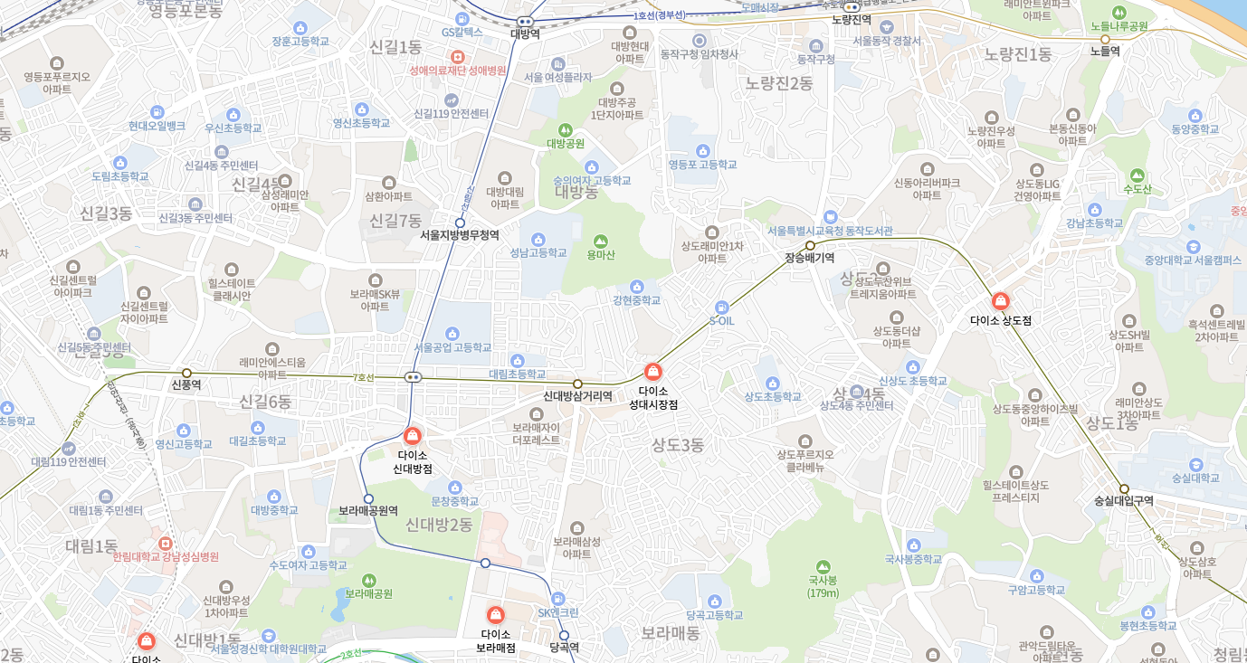 가까운 다이소 찾기로 이동하시면, 네이버 지도에 다이소 위치가 표시되는데요
