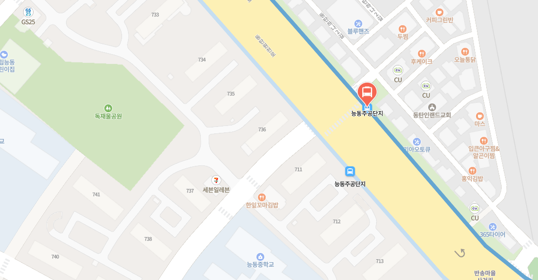 더레이크시티부영 3단지 아파트 앞에서 승차하면 됩니다.