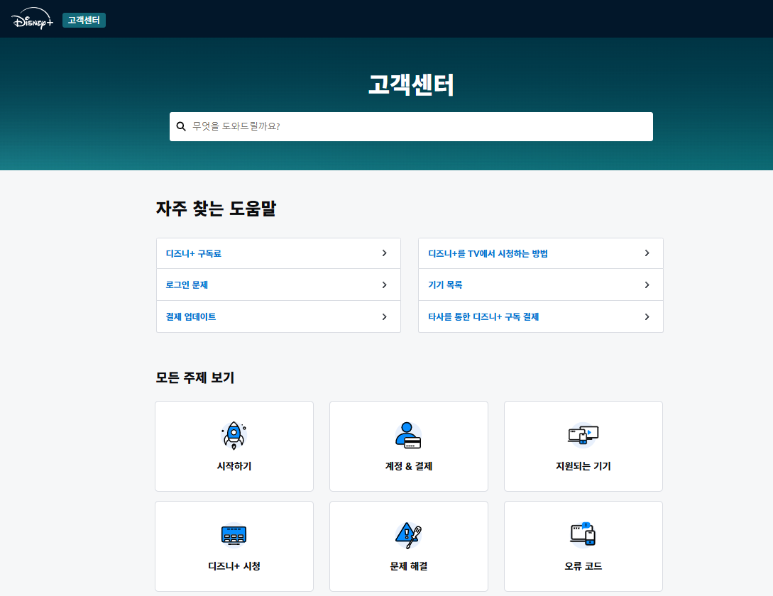 ① 디즈니 플러스 고객지원 페이지로 이동합니다.