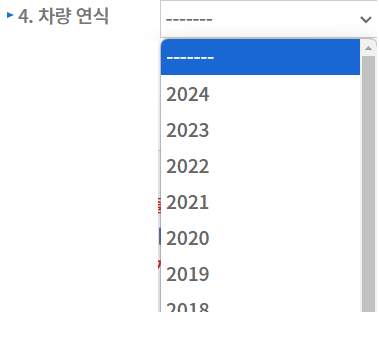 4. 차량연식: 차량의 최초신규등록년도를 선택합니다.