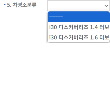 5. 차명소분류: 차량의 상세구분을 선택합니다.