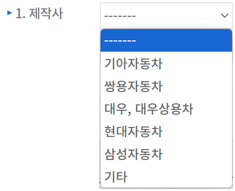 1. 제작사: 자동차의 제조회사를 선택합니다.