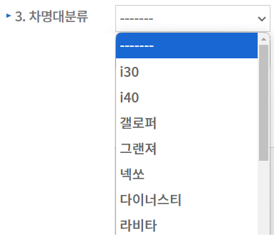 3. 차명대분류: 차량의 명칭을 선택합니다.