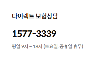 - 다이렉트 보험상담: ☎️ 1577-3339 (운영 시간: 평일 오전 9시 - 오후 6시)
