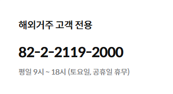 - 해외거주 고객 전용: ☎️ 82-2-2119-2000 (운영 시간: 평일 오전 9시 - 오후 6시)