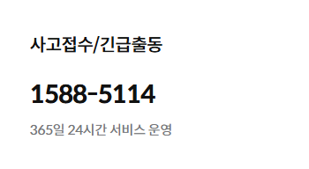 - 사고 접수 및 긴급 출동 서비스: ☎️ 1588-5114 (365일 24시간 운영)