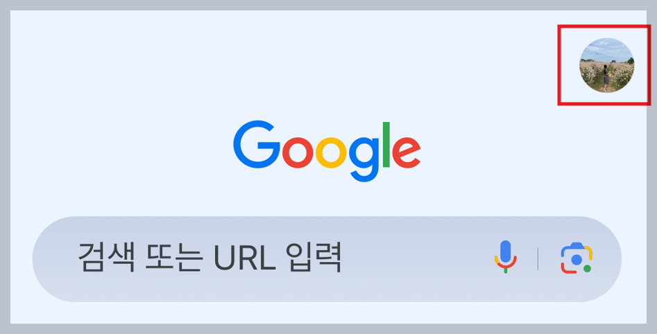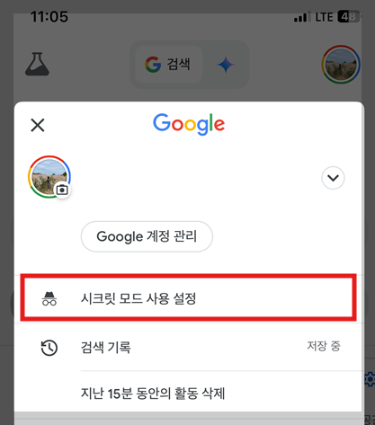 핸드폰에서 시크릿모드 실행을 위해서는 구글 어플로 접속 후 우측 상단의 프로필 이미지를 클릭합니다.