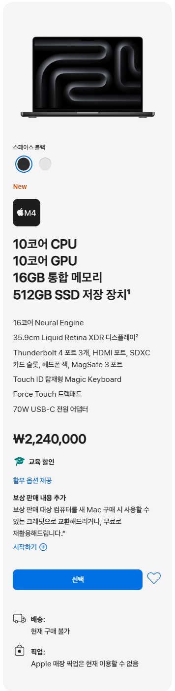 - AppleCare+ 할인: 교육 할인 적용 제품과 함께 AppleCare+를 할인된 가격에 추가할 수 있습니다.