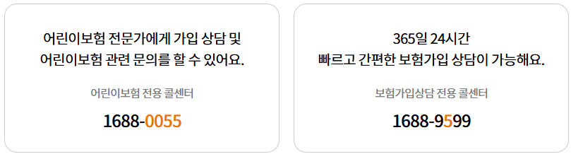 | 어린이보험 전용 콜센터 | 1688-0055 | 평일 9:00~18:00 |