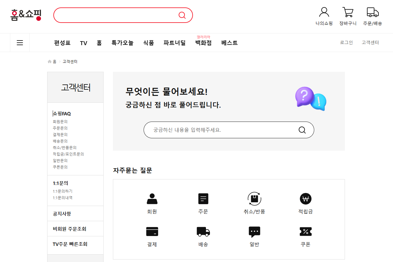 홈앤쇼핑 고객센터 전화번호